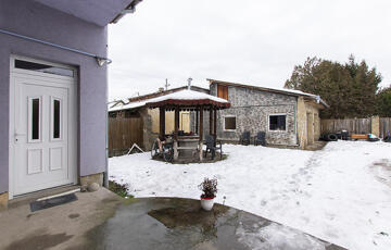 A házrészhez különálló, 15 m²-es garázs is tartozik, amely nemcsak parkolásra, hanem tárolásra is kiválóan alkalmas.