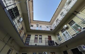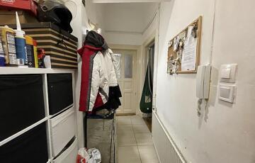 Corvin negyedben, közepes állapotú, első emelet magasságában lévő, de ingatlannyilvántartás szerint földszinti, világos lakás eladó.