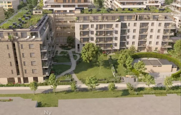 A modern társasház belső, zöld udvarral rendelkezik, amely csendes, családbarát hangulatot teremt. Az épület kialakítása a nyugalmat és a minőségi lakókörnyezetet helyezi előtérbe.