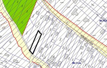 Emelkedős terepviszony a kert vége felé indulva ezért ajánlott a kert elejét hasznosítani lakóingatlan elhelyezésére.