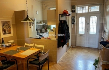 ,,Budapest VIII. kerületében, a Tisztviselőtelep frekventált és rendkívül kedvelt részén eladó egy 95 m²-es, körbejárható, tágas terekkel rendelkező polgári lakás. Az ingatlan egy Hültl Dezső építész által tervezett, a 20-as években épült, masszív 60 cm vastag falakkal rendelkező liftes társasházban található, amely télen jól tartja a meleget, nyáron pedig kellemesen hűvös marad.A lakás elrendezése praktikus és élhető: két nagy szoba, egy fél szoba, étkezős konyha, fürdőszoba és külön WC található benne. A 3,60 m-es belmagasság tovább növeli a tágasság érzetét, így akár iroda, ügyvédi rendelő vagy orvosi praxis kialakítására is kiválóan alkalmas (a házban több hasonló működik is).Az ingatlan egy ötszintes, liftes épület magasabb szintjén helyezkedik el, ÉNY-i fekvéssel. Fő ablakai az utcára néznek, míg a konyha és az előszoba a társasház udvarára és a körfolyosóra nyílik, így a lakás a városi környezet ellenére kifejezetten csendes.A fűtés gázkonvektorral, a meleg víz gázkazánnal működik; minden közmű egyedi mérős, a közös költség 25.000 Ft. A környék infrastruktúrája kiváló: több egyetem, bevásárlási lehetőség, valamint az 1-es villamos és a Népligeti metróállomás néhány perc sétával elérhető.A környéken a parkolás rendkívül kedvező, könnyen találni szabad helyet, ami nagy előnyt jelent a belvároshoz közeli elhelyezkedés mellett.A lakás hitelre is megvásárolható, a finanszírozásban ingyenes tanácsadással segítjük a vevőket.Kiváló elhelyezkedésű, jól alakítható, polgári hangulatú lakás akár otthonnak, akár vállalkozásnak.