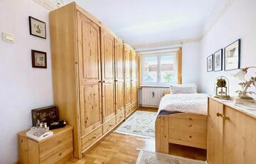 További előny, hogy a lakáshoz tartozik egy zárt és fedett gépkocsibeálló, valamint az udvaron egy 7 m²-es faház, amely ideális tárolásra, kerti eszközök elhelyezésére vagy akár hobbi célokra.