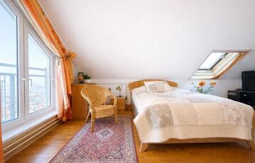 Az ingatlan keleti és északi fekvésű, ennek köszönhetően világos, ugyanakkor kellemes klímájú. A panorámás kilátás a környező zöldövezetre és a városra különleges, nyugodt atmoszférát teremt.