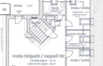 • külső lifttel elérhető teraszról és belső lépcsőházi térből nyílóan akár ÖNÁLLÓ SZINT: jelenlegi iroda vagy akár önálló lakás hasznosításra,