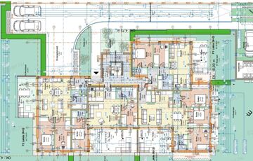 A társasház 2 emeletén, a földszinti lakásokkal együtt 12 lakás található, lifttel és a pince szinten teremgarázsokkal.