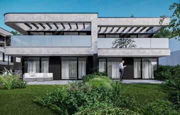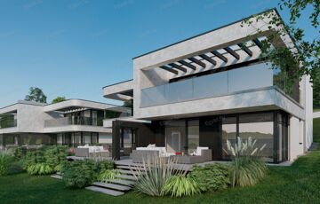 Megvételre kínálunk a 3. kerület egyik legszebb részén, az Ürömhegyen, egy minimál stílusú, ÖRÖKPANORÁMÁS, dupla garázsos, HÓSZIVATTYÚS, teraszos, erkélyes, 195 nm-es, 5 szobás, dupla komfortos luxus ikerházat. Az ingatlan egy villaparkban épül, ennek megfelelő műszaki tartalommal és kivitelezéssel.