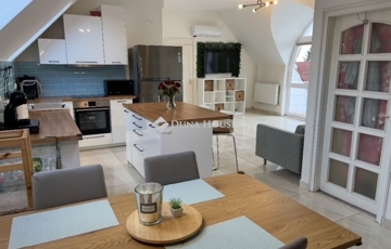 Kivételes lehetőség Budapest 18. kerület kertvárosi részén !3 lakásos társasházban kínálom megvételre ezt a 83 nm alapterülettel rendelkező , tetőtéri lakás Budapest XVIII. kerület Újpéteri részén. Főbb jellemzők:Alapterület: 83 m²Elrendezés:-amerikai konyhás nappali- 2 szoba-fürdőszoba +wc-wc-gardrób szoba Erkély: 4 m², délnyugati tájolású1 db autó beállási lehetőség az udvarra .Kert használatPrivát, zárt lépcsőház + extra tároló + padlásA lakás fűtését és melegvíz ellátását gázcirkó biztosítja , radiátorokon történő hőleadással ( 2025 ben lett korszerűsítve )A lakásban 1 db klíma került beszerelésreA modern kialakítású beépített gépiesített konyhabútor a vételár részét képezi. Csendes, családbarát környék, barátságos lakóközösségA társasházban 2 lakás és 1 üzlethelyiség találhatóKözelben: bevásárlási lehetőségek, óvoda, iskola, orvosi rendelőAmennyiben hirdetésem felkeltette érdeklődését, várom megtisztelő hívását.