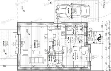 A ház egy nagyobb telken fekszik, melyből kb. 300 nm privát kert. Gépjármű beállási lehetőségével a térkövezett gépjármű beállón lehet biztonságosan parkolni.