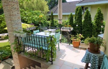 Az ingatlan egy 1718 nm-es gyönyörű, értékes növényekkel parkosított telken fekszik, mely akár egy vállalkozás részére megosztható.
