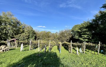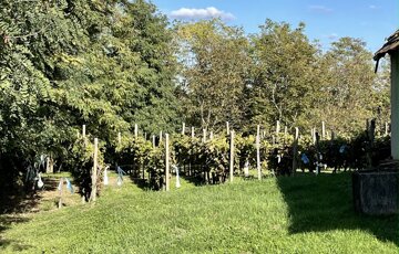 A területen található szőlő és gyümölcsös rendszeresen gondozott, művelt állapotú, azonnal használatba vehető. A környék csendes, jó levegőjű, természetközeli, ideális pihenésre vagy vidéki gazdálkodásra.