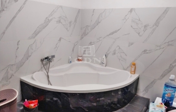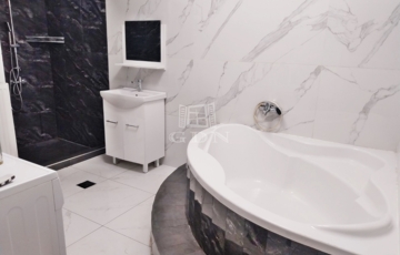 Kényelmes méretű fürdőszobája nagy sarokkádal és épített zuhanyzóval is rendelkezik emelve a komfort érzetet.