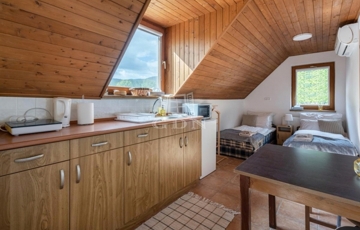 A telken 5 különálló lakóépület található, melyek közül kettő hivatalos szálláshelyként üzemel, 24 fő elhelyezésére engedéllyel, ami igény esetén 45-50 főre bővíthető. A további épületek jelenleg lakóépületként és tárolóként vannak használatban, de ezek is könnyen átalakíthatók szálláshellyé.