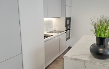 Beépített előszoba, - fürdőszoba (mosógéppel) és konyhabútorral, plusz gépek (sütő, főzőlap, mikrohullámú sütő, szagelszívó, hűtőgép és fagyasztó. Konyha sziget.