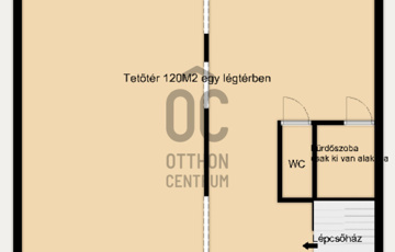- egy légtérben 120 M2, szintén vizesblokkal, WC-vel, illetve a fürdőszoba nincs kialakítva, viszont a vizet felvitték