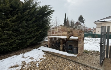 A szépen gondozott udvaron egy külön elkerített, hangulatos kerti sütögető rész került kialakításra – tökéletes helyszín családi és baráti összejövetelekhez.