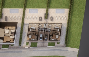 Egy fedett gépkocsi beálló, egy kültéri parkoló.