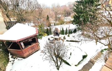 A kertben szaletli, grillező, gyerekjátszótér lett kialakítva.