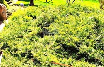 A terület gondozását öntözőrendszer és robotfűnyíró segíti.