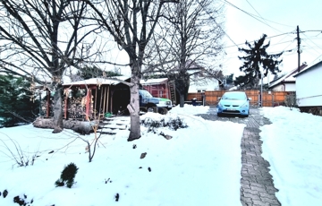 Az 1226 nm-es, gondozott telken, 2 garázs, 2 fedett kocsibeálló, +10 autónak parkoló épült.