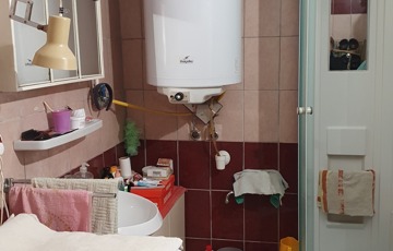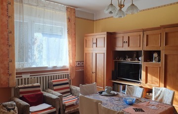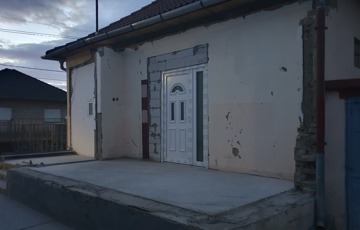 Az előszoba bontásra került az otthon startnak való megfelelés miatt, most teraszként funkcionál, innen nyílik a konyha, spájz, Wc., továbbá a nappali KB:20 m2.A nappaliból nyílik a fürdőszoba KB:10 m2 és a másik nagyobb szoba KB:24 m2, melyből ki lehet menni hátra a műhelybe, onnan az udvarba. A ház negyede alatt szuterén van vegyes tüzelésű kazánnal. Garázsnak is használható melléképület KB: 15 m2, ólak, füstölő is található. A telken az udvarról közelíthető meg a kis házi kert. Eladási ár: 33 900 000-FT