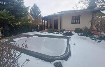 A telken van még egy könnyűszerkezetes 70 nm-es 2 szintes melléképület, amelynek a földszinti része tárolásra a fenti lakhatási célra van kialakítva, továbbá egy 7x4 méteres gépesített medence és még két autó számára fedett kocsibeálló is rendelkezésre áll.