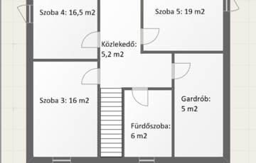 - két szintes lakórész: 2 fürdőszobával, nappali+4 külön nyíló hálószobával