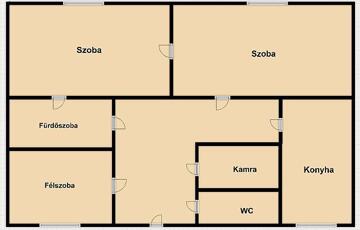 Az ingatlan 2+1 félszobával rendelkezik, elrendezése praktikus és jól alakítható. A WC külön helyiségben található, valamint kamra is a lakás része. A fűtést gázkonvektorok biztosítják.