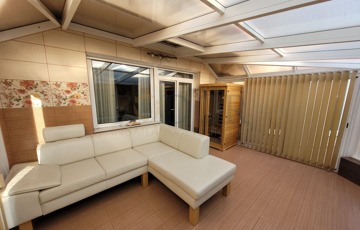 A 2019-ben kialakított télikert az étkezőből közvetlenül megközelíthető, és modern kényelmet biztosít, hiszen egy Daikin egy Prémium kategóriás inverteres hűtő-fűtő klímaberendezéssel és egy 4 személyes szaunával van felszerelve.
