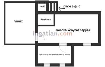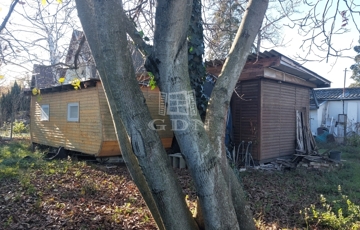 Egy kis faházat, miben található egy zuhanyzós fürdőszoba toalettel és egy amerikai konyhás nappali. Jelenlegi tulajdonos igényesen kibővítette egy szobával, amit lakokocsival oldott meg.
