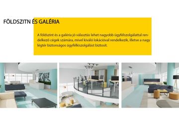 A földszinten plusz egy galéria található, így bemutató teremnek és irodának is tökéletes, akár kereskedelmi egység(webshop), akár egészségügyi intézmény is létrehozható itt.
