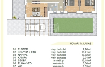 Burkolatok: Vinyl és laminált padlók, kopásálló hidegburkolat, burkolati keret: 5.000 Ft/m²-ig választható