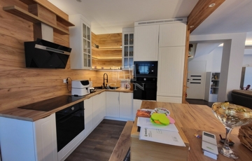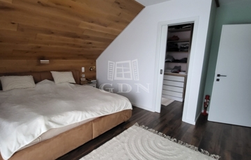 Ják átmenő forgalomtól mentes csendes utcájában eladó, páratlan adottságokkal rendelkező luxusingatlan. A lakóház mindkettő szintje átgondolt,praktikus, kényelmes kialakítású. Magas műszaki, technikai felszereltséggel átalakított ingatlan 2022-ben nyerte el kifogástalan esztétikai formáját. Tulajdonosai különös figyelmet fordítottak a harmonikus megjelenésre, a helyiségek egyenletes, kellemes fényviszonyainak biztosítására. Ennek érdekében hangulatos fali világítócsatornák, ledszalagok, álmennyezeti világítások, bútorok mögé épített világító felületek kaptak helyet. Négy rétegű üvegezéssel ellátott hatalmas tolóajtós felület biztosítja a természetes fényviszonyokat az ingatlan terasza felöl. Az erkélyajtó elektromos aluredőnnyel felszerelt. Közel 40 m2 -es terasz köti össze a házat az 1400 m2-es , szépen karbantartott kerttel. Elektromos hálózata 2x16 A, 1x40 Amper. A tetőn 23 db napelem található, 9.4 kw teljesítménnyel, invertellel. A dupla garázsban elektromos autó töltési lehetrőséggel. Az ingatlan fűtése Bosch kondenzációs kazánon kívül, modern cserépkályhával, központi hűtő -fűtő klímával történik, 5 db Daikini klíma került beépítésre. A ház négy hálószobával, három fürdővel rendelkezik. Amerikai konyhás nappalija 47 m2. Érdekessége a hangulatos ablakfülkéje izgalmas