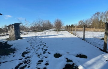 A telek két utcáról is megközelíthető, utcafrontja 14,4 méter, elhelyezkedése jól megközelíthető, mégis nyugodt környezetet biztosít. A terület kb. 100 termő gyümölcsfával van betelepítve.