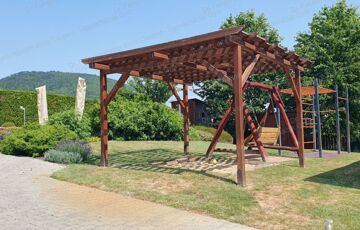 – több mint 100 m²-es, részben fedett terasz grillezővel, kemencével és bográcsozóval