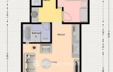 Az ingatlanban tágas amerikai nappali teljesen felszerelt, gépesített konyhával, hálószoba, fürdő (kád és walk in zuhany), külön toalett (mosdóval és bidé zuhannyal), mosó- és szárítógépnek kialakított tolóajtós (mennyezetig érő) gardrób is helyet kapott.