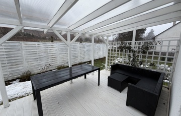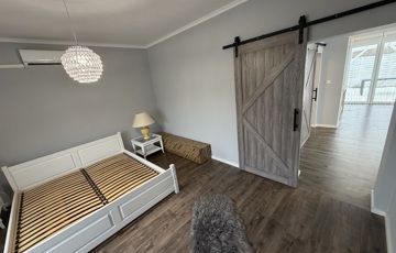 - Nappali + terasz kapcsolat: új építésű, fedett terasz, közvetlen kijárattal – reggeli kávé, esti bor, este beszélgetés, eső nem számít és ahol az idő végre lassabban telik