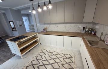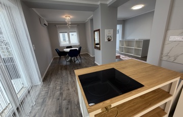 - Konyha: új, egyedileg gyártott konyhabútor – nem katalógusból