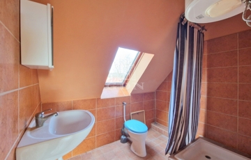 - Az EMELETEN: egy közlekedőnek, 2 hálónak, valamint egy zuhanyzóval és toalettel ellátott második fürdőnek.