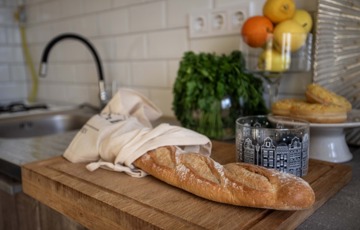 A konyha szeparált, ami a mindennapi használat során kifejezetten előnyös. Az elkülönített tér lehetővé teszi a zavartalan főzést, miközben a lakótér megőrzi nyugodt, rendezett hangulatát, és a szagok, zajok sem zavarják a pihenést vagy a vendégek fogadását.
