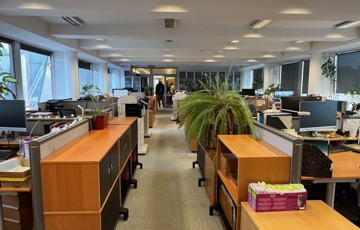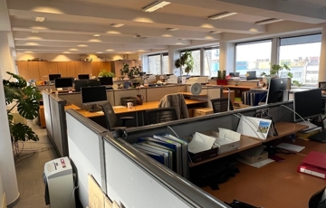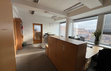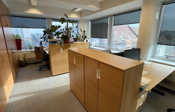Győr-Belvárosának rendkívül kedvelt részén, Baross úttól, Széchenyi tértől pár másodperces sétatávolságra, rendezett, tiszta, liftes irodaház 5. emeletén, 157 m2-es tárgyalóból és 3 db méretes irodából álló, (17 m2, 26 m2, 29 m2) továbbá saját teakonyhával és szociális egységgel felszerelt, nagy üvegportálos, összesen 306 m2-es bútorozatlan iroda kiadó.
