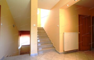 A házat a tulajdonosok 2005-ben építették, egyedi tervek alapján, 38-as téglafalazattal, hőszigetelt ablakokkal az akkori műszaki előírásoknak megfelelően. Az felhasznált építőanyagok minőségének tekintetében sem lesz kivetni valója az ingatlan leendő tulajdonosának, többek között a márvány könyöklő a lépcsőházban, gránit konyhapult, vagy pl a teljesen új kondenzációs kazán, cserépkályha, a beltéri ajtók is a luxus kategóriát képviselik. A házban 5 szoba (4szoba+nappali), 2 fürdő helyiség, konyha, kamra, háztartási helység, található, amihez 25nm-es terasz tartozik, valamint a pinceszinten tárolók, dupla garázs, kazánház-mosdó is a ház részét képezi. Fűtése energiatakarékos kondenzációs gázkazánnal történik radiátoros hőleadással. a nappaliban gyönyörű cserépkályha is segíthet a kívánt hőmérséklet elérésében.