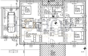A tágas, amerikai konyhás nappali, kamra, két fürdőszoba-wc, három külön nyíló hálószoba, valamint egy dolgozó szoba és garázs teszi teljessé a kényelmet. Bár a tetőtér nem beépíthető, a lakótér maximálisan kihasználható. A prémium Daikin hószivattyú gondoskodik a fűtésről és meleg vízről, míg a ház központi Gree klímája biztosítja a friss hűvösét.