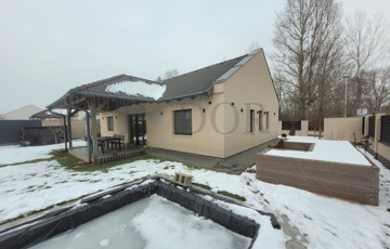 Fedezze fel ezt a lenyűgöző, földszintes ikerházat Szada közkedvelt részén, a Fenyves ligeti lakóparkban! Az ingatlan 2020-ban épült, bruttó 120 m²-es területén egy 880 m²-es saját telek kínálja a nyugalom szigetének élményét. Tégla építésű házunk gyönyörű állapotban várja új lakóit, teljes bútorzattal és prémium kivitelű berendezésekkel – medencével és szaunával felszerelve!