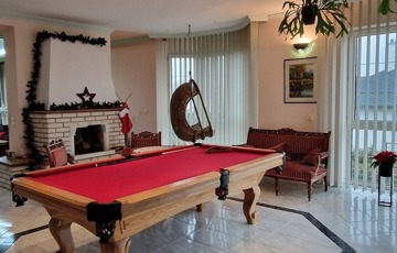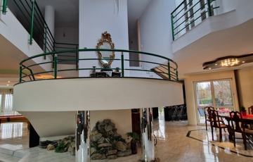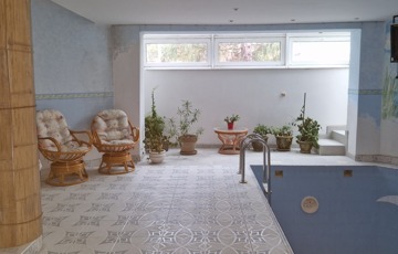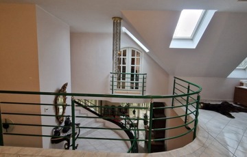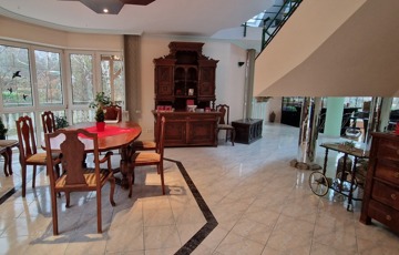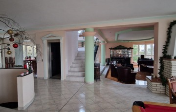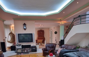 Az épület a 90-es években épült Ytong falazóelemekkel, külső nemesvakolattal borítva. A többszintes családiházban borospince, vizforgatós medence, szauna, és szolárium is helyet kapott. A hatalmas nappali a konyhával egybeépítve, de mégis a konyha külön részegységet képezve helyezkedik el.