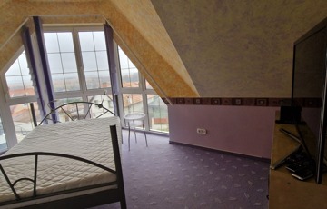 A ház a hegy felső részén helyezkedik el, örökpanorámával, a Fertő- tóra nézve.