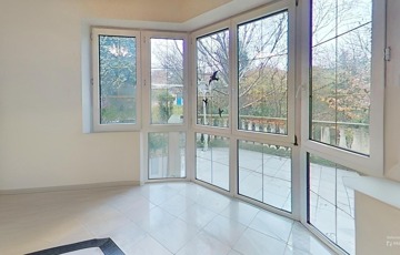 Az ablakok 2 rétegű hőszigeteltek, az épület minden oldalán hatalmas üvegezéssel biztosítják a világosságot, és a panorámát.