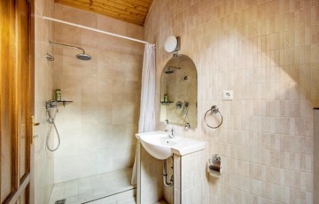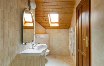A házban háromszoros fűtési rendszer (gázkazán, vegyes tüzelésű kazán, kandalló) van.