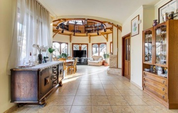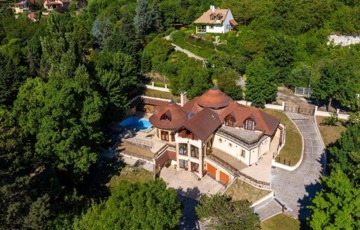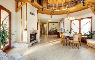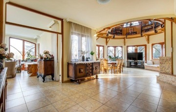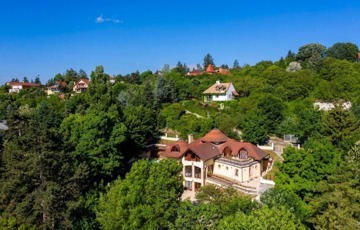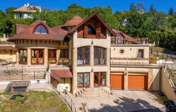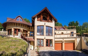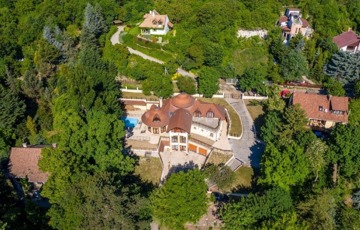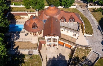 Szentendrén eladó egy 2011-ben épült, 3 szintes „Organikus” családi ház (6 hálószoba - mindegyik fürdőszobával, nappali kupolás galériával és hatalmas teraszok csodálatos panorámával, szabadtéri medence, boros „pince”, konditerem, szauna, az alsó szinten egy szolgálati lakás van kisegítő személy részére).
