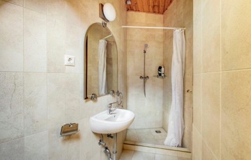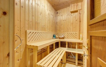 Alsó szint 200 nm: garázs 2 kocsi beállására, tárolók, mosókonyha, irodahelyiség, konditerem, a fűtésrendszert magába foglaló helyiség a gázkazánnal, lépcső, fürdőszoba WC-vel, zuhanyzóval, szolgálati lakrész kisegítő személyzet számára.
