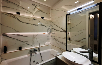 A minőséget Marazzi burkolatok, Grohe és Villeroy&Boch szaniterek,Gorenje Ora Ito gépek valamint Kare, BoConcept és Einholz designer márkák fémjelzik.